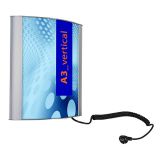 Hochwertige gewölbte Leuchtbox mit neu entwickelten Klapprahmenprofilen an zwei Seiten, welche einen einfachen Motivwechsel ermöglichen.