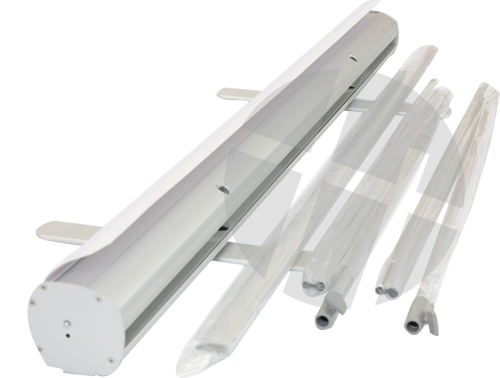 Hochwertiges Roll-Up aus Aluminium für hohe Qualitätsansprüche. Das Roll-Up hat zwei stabile Standfüße aus Massiv-Aluminium. Praktisches und haltbares Klemmprofil oben. Lieferung mit gepolsterter Tasche.