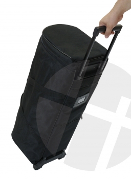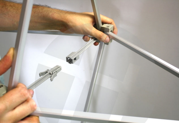 Assembly and dismantling of the fabric pop up stand is incredibly simple, requiring no tools and taking only a minute or two. Your advertisements are directly placed onto the Velcro frame. A neutral, wheeled trolley is included.