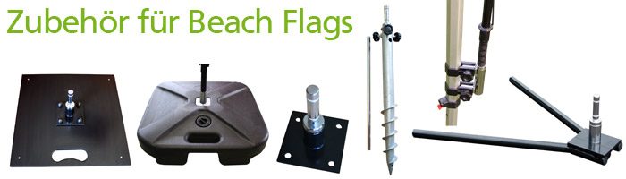 Unsere Beach Flag Stangen werden immer inklusive einer Tasche ausgeliefert, in die eine Bodenbefestigung Platz findet (außer Bodenplatten, diese müssen separat transportiert werden)