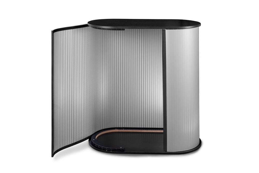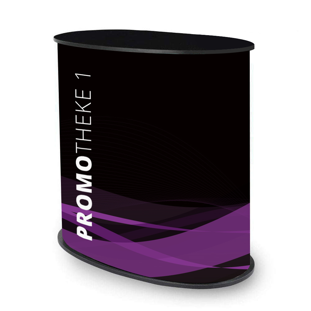 Sehr leichte, leicht aufzubauende, dennoch sehr robuste Messetheke oval